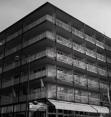 Em suma, Praia de Laredo, como se para gozar o tempo, também fosse preciso sofrê-lo. Se acreditam que aqui não é tudo pensado, desçam do quarto à cafetaria onde a banda sonora alterna Casablanca com bossa nova — volume aí no nível quatro para coincidir com o ar condicionado do quarto. Paredes de rigoroso azul-celeste, castiçais discretos e afirmativos, é preciso manter funcional a solenidade de um hotel sem hóspedes num restaurante sem clientes.
